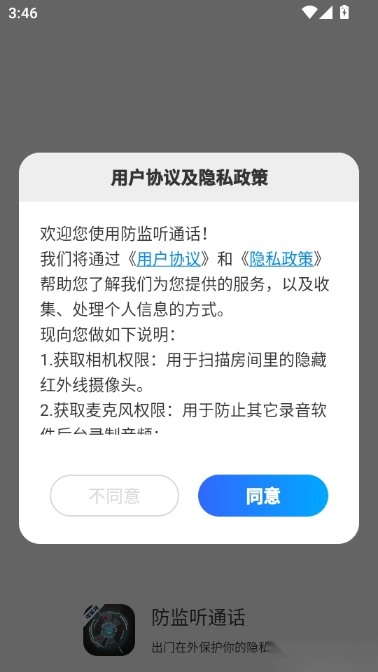 这是一款主打防监听与防偷拍安全检测及管理功能的应用——防监听通话最新版。它能为你提供强大的手机防监听安全保障,实时监控后台所有应用,全方位满足手机隐私对话的保护需求;同时,软件实用的手机隐私安全卫士,一键即可屏蔽其他应用的麦克风权限,有效降低重要隐私信息外泄风险;此外,防监听通话手机版还配备独特的来电模拟工具,可轻松模拟多种真实来电效果。对这款软件感兴趣的用户,不妨直接到本站体验一番。