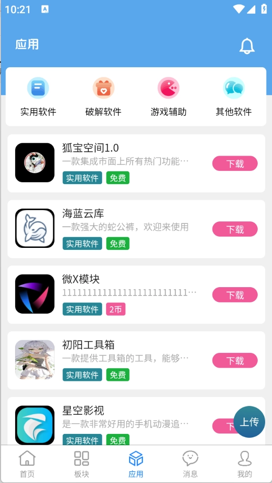 5、“应用”页面,有超级多的软件资源,包括影视类、工具类以及小说类等。