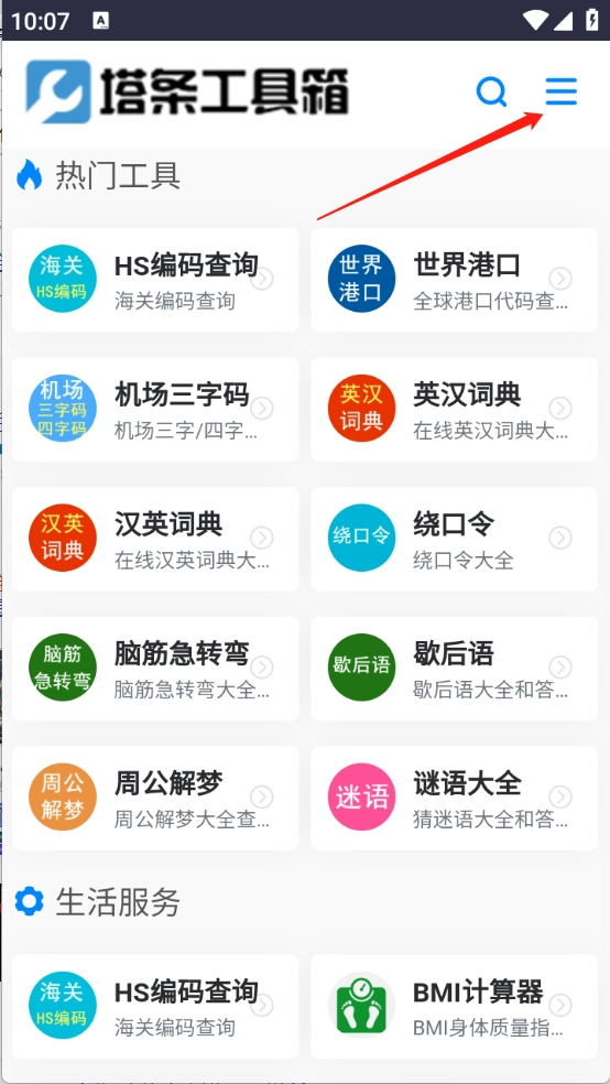 2、进入首页汇集了海量的工具资源,点击右上角的三个横杠标志。