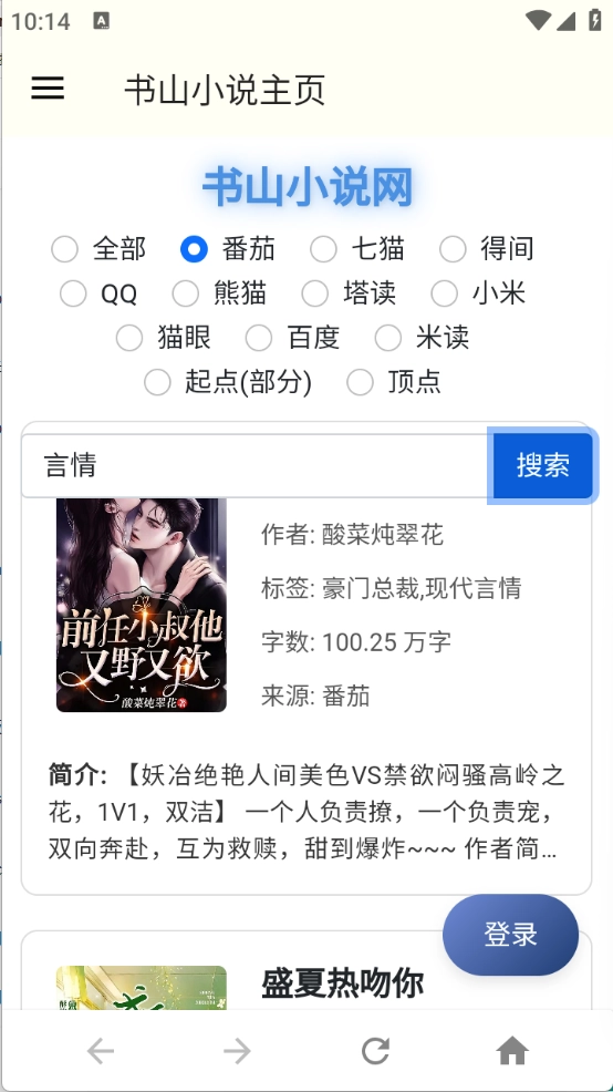书山小说汇聚了丰富的小说资源,主要采用关键词搜索的方式。像七猫、番茄、得间等多个平台的资源这里都有,而且所有小说资源都是免费的。你可以把小说加入书签,也能进行相关操作,你想看的小说基本上都能在这里找到。