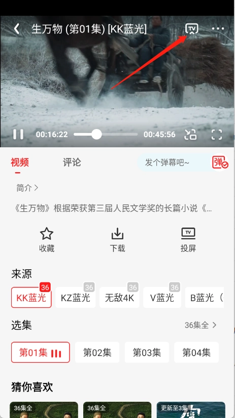 1、打开想要观看的影视资源进入播放界面,点击右上角的“TV”按钮。