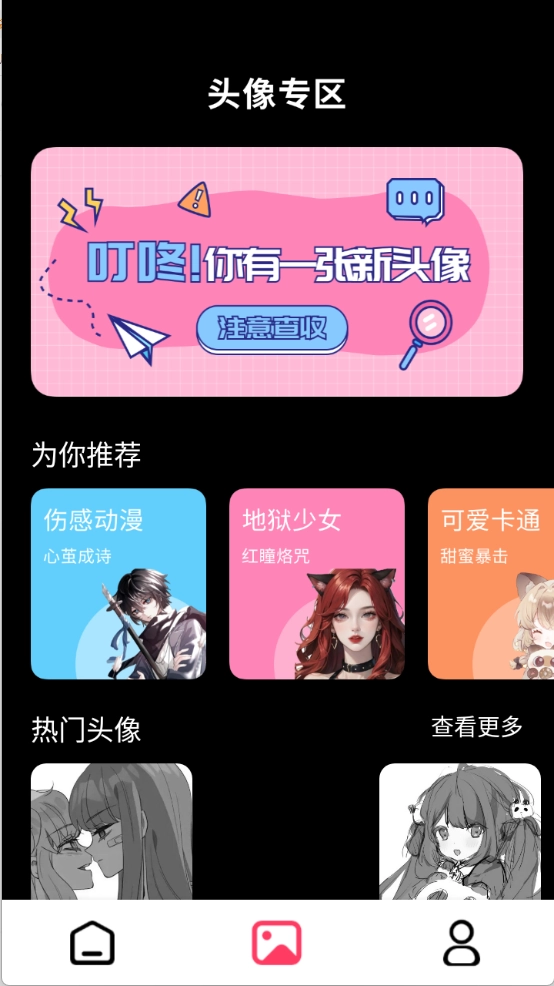 3、“头像”页面,可爱头像、动漫头像等都有。