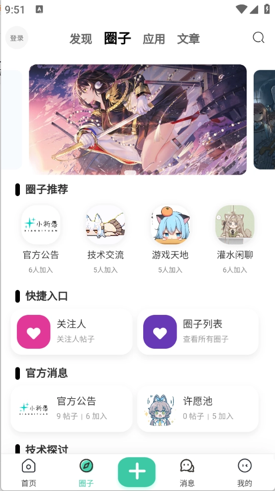 3、圈子页面用户可以加入各种群聊圈子,认识很多志同道合的好友。