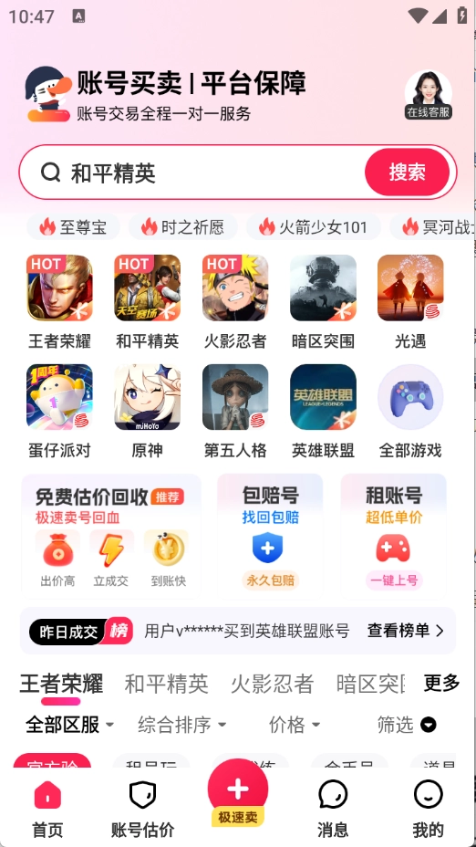 卖号么,作为专业又靠谱的游戏账号交易平台,覆盖了王者荣耀、蛋仔派对、和平精英等多种账号类型。平台上每个账号都配有详细介绍与截图,能帮玩家快速找到心仪账号,不仅性价比高,买卖账号的流程也十分便捷。