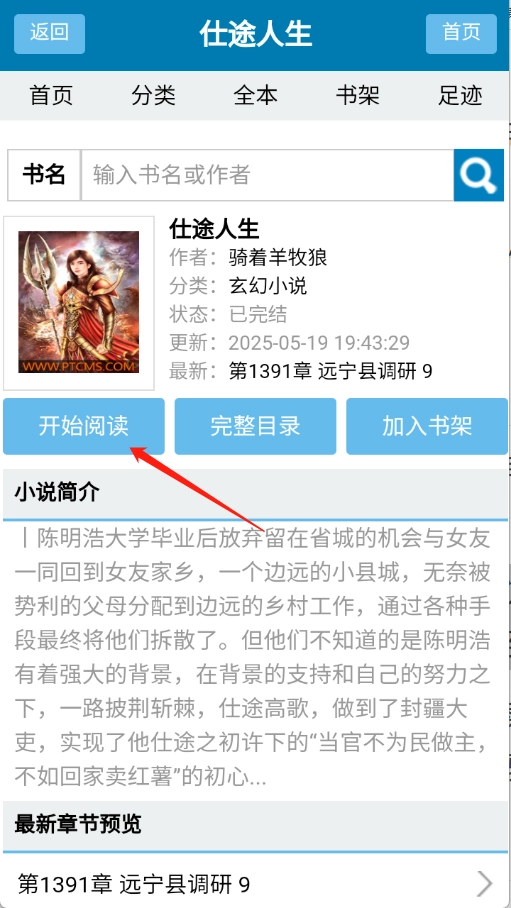 4、找到想看的小说并点击进入详情页,点击“开始阅读”。