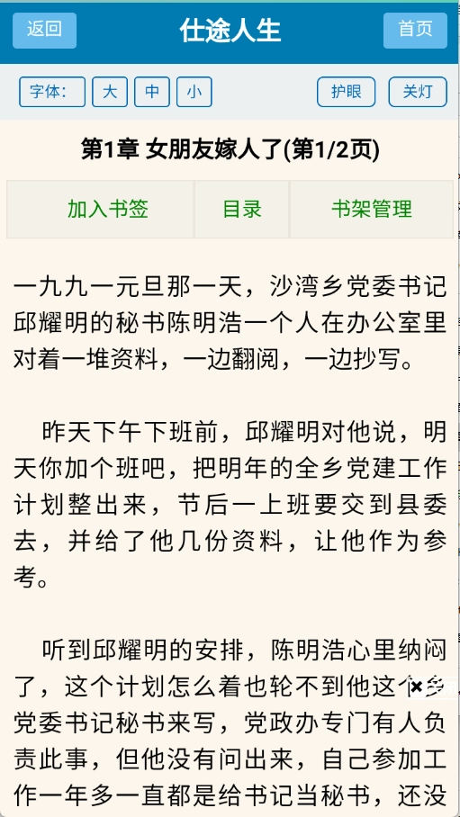 1、阅读界面设计舒适,字体大小支持调节,能够满足不同用户的阅读习惯。
