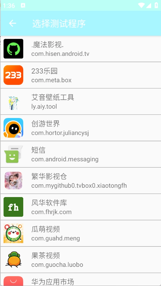 3、选择要测试的应用。