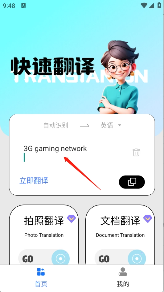 2、进入之后,在搜索框中输入要翻译的内容点击立即翻译。