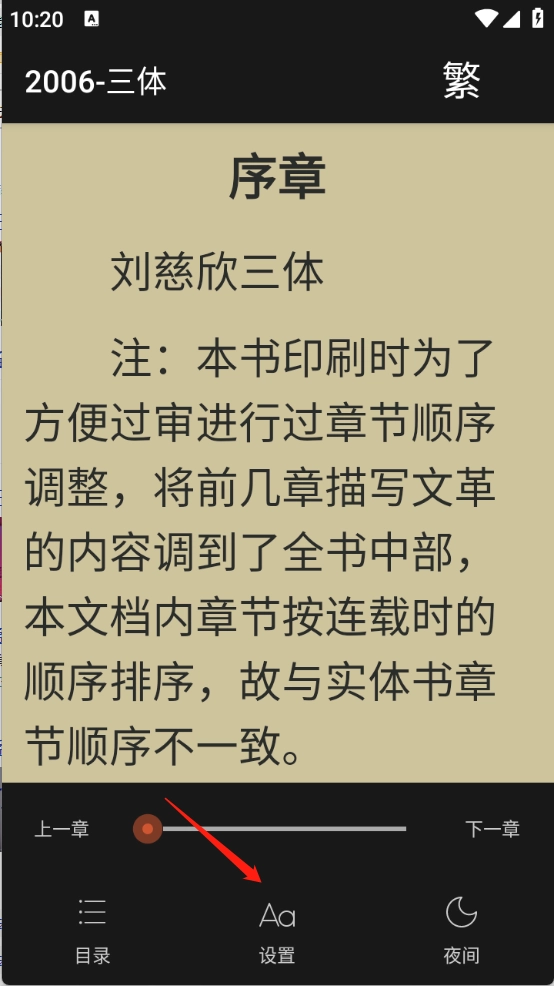 4、解压完成之后,点开小说进入阅读页面,可以对阅读页面进行各种设置。