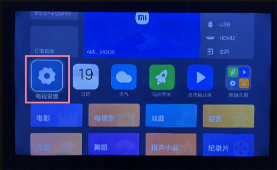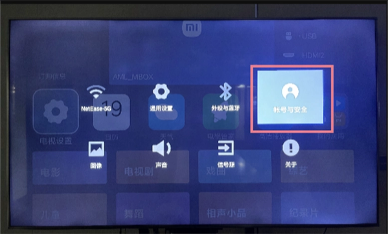2、在小米/红米电视中找到“设置” → “账号与安全”。