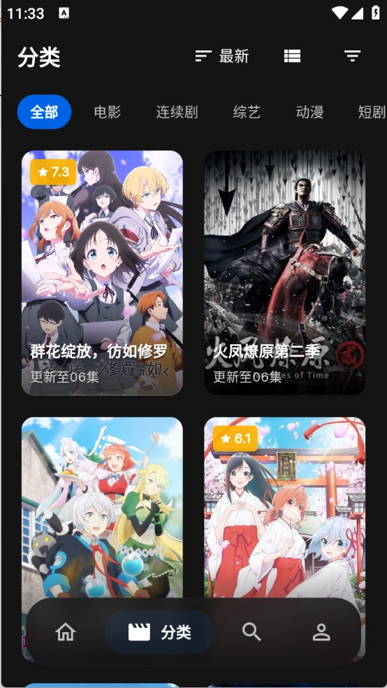 3、分类页面,包含了电视剧、电影以及综艺等类型。