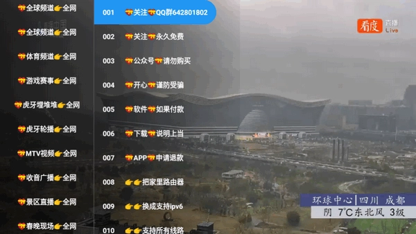 3、点击屏幕可调出菜单栏进行切换频道。