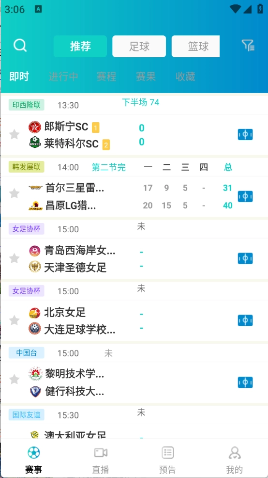 极速体育是一款专为球迷打造的体育赛事软件,在这里能浏览丰富的赛事信息与直播内容,还能预约尚未开赛的赛事,涵盖足球、篮球等多个项目,同时支持观看直播回放,即便错过直播也无需担忧,球迷们可以随时查看自己感兴趣的体育赛事。
