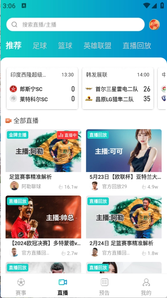 3、为国内外足球、篮球赛事提供实时直播服务,并且配备赛事回放功能,确保用户不会错过每一场精彩比赛。