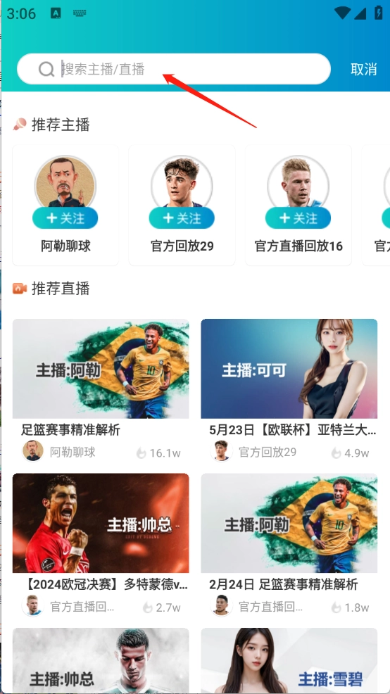 4、也可以通过搜索关键词查找想看的体育赛事。