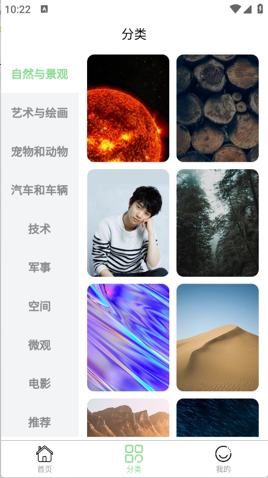 3、“分类”页面,将壁纸进行了详细的归类,无论是车辆、宠物还是绘画等都有。