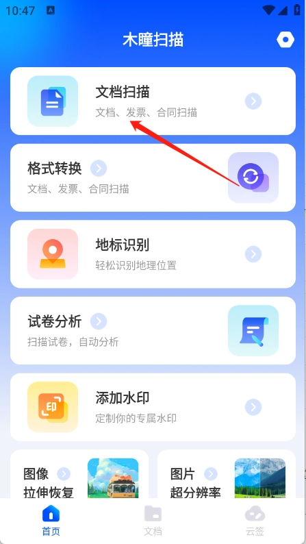2、进入到首页之后点击“文档扫描”。