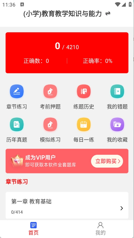 2、进入首页可以看到很多的题库信息,包含了章节练习、考前押题以及模拟练习。