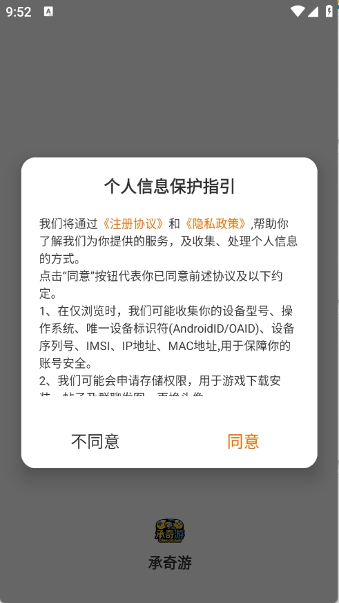 1、用户首先在本站承奇游,查看并同意隐私政策与用户协议。