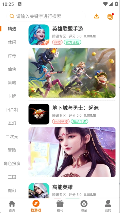 3、找游戏页面涵盖了很多的游戏资源,仙侠、冒险以及三国等类型都有。