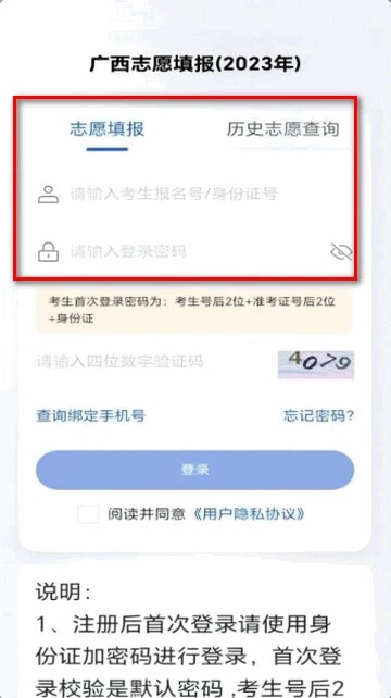 3、进入登录页面,输入考生身份证号和密码进行登录。