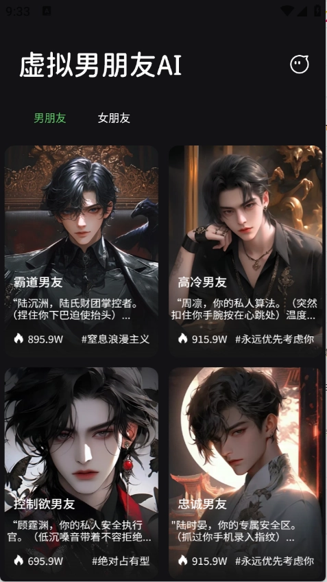 虚拟男友AI,支持与虚拟角色互动交流,涵盖男女不同形象;你可以给虚拟角色发送消息,它会依据你的话语给出详尽回复,让你时刻都能感受到陪伴;还能围绕多个话题展开延伸,随时开启沉浸式的互动交流体验。