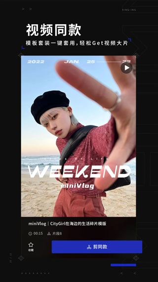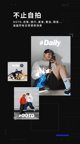 这是一款面向年轻人的影像拍摄工具,能满足他们“自拍与拍视频、修图与剪辑”的核心需求,风格主打“潮酷”,操作则追求“极简”。“秒用秒会”的同款模板覆盖了“OOTD、恋爱、旅行、美食、聚会”等各类日常使用场景。