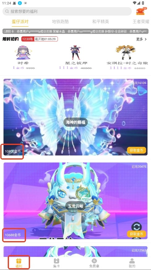 3.在限时抢购中,会有低价金币就能领取的福利。可以每天定时逛逛