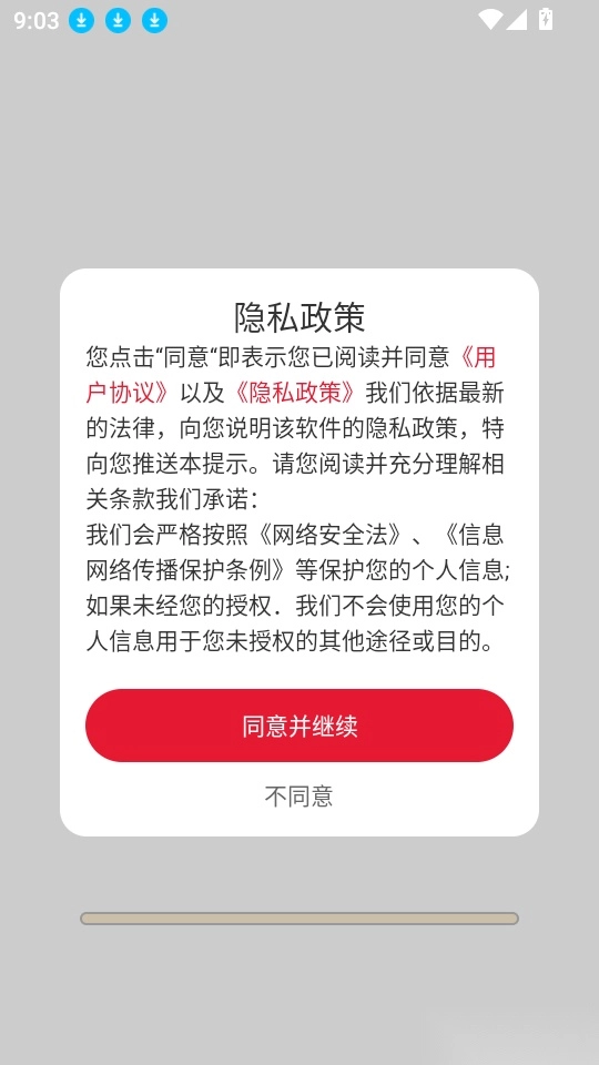 1、首先打开应用点击“同意并继续”按钮进入中。