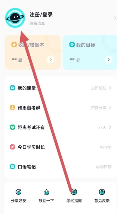 2、在个人中心界面中,点选头像旁的【注册/登录】选项