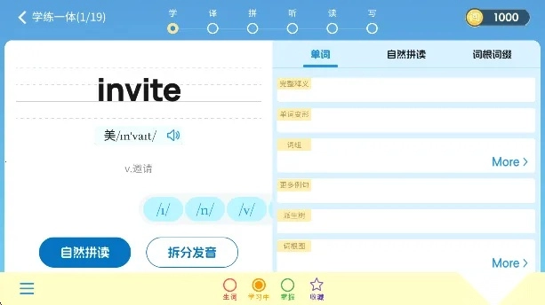 2、学习模式多种多样,涵盖单词背诵、拼写练习、语境运用等,并且有词意理解、抄写巩固、拼写训练等多种记忆模式。