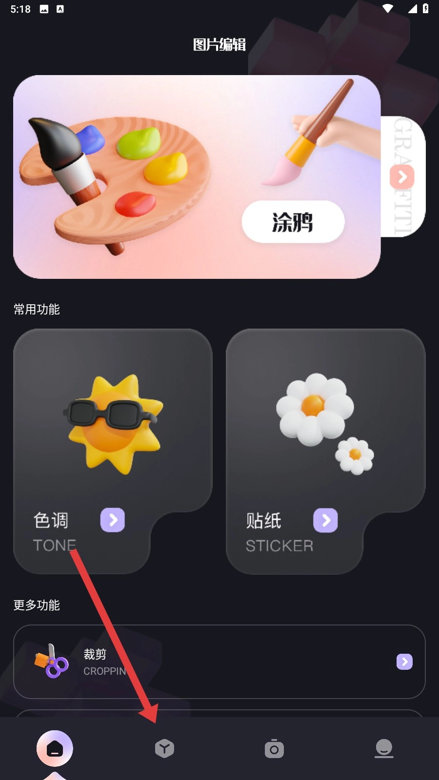 1、进入图片编辑页面后,点击底部对应功能图标,可进入【图片拼接】功能界面,开启图片拼接操作。