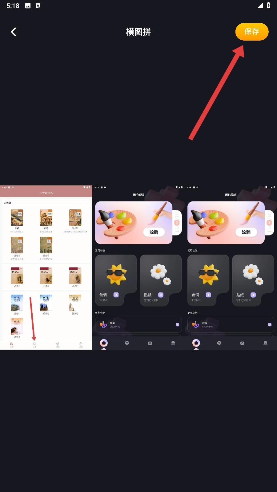 4、图片按横图拼样式排列好后,点击页面右上角【保存】按钮,即可保存横向拼接好的图片。