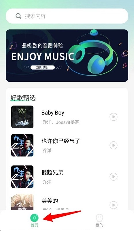 1. 搜索歌曲,输入想听的歌曲名称,软件会自动为你搜索相应的歌曲信息。