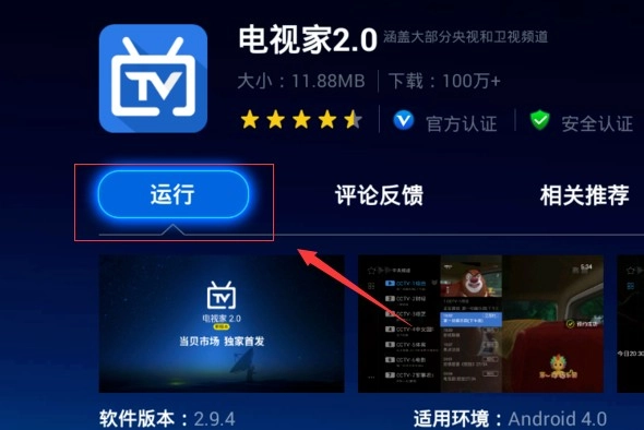 7、搜索出来之后,出来的电视家。点击运行,就可以看高道清的电视频道。