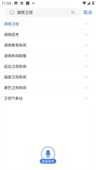 2、比如我们搜索湖南卫视频道,点击上方搜索框,输入湖南卫视,选择第一个;