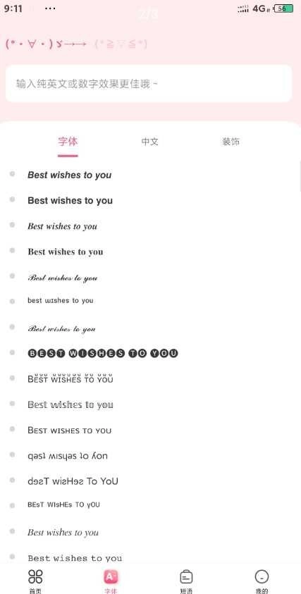 7、输出功能:软件为用户提供海量的花样字体,让用户在不安装字体插件的前提下,轻松运用各种字体。