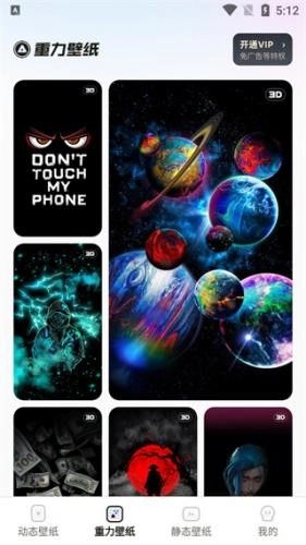 2. 独特的重力壁纸,通过手机的重力传感器产生动画效果,使壁纸随着手机的倾斜而移动。