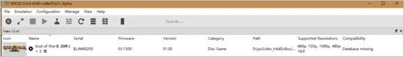 5、游戏就已经放进ps3模拟器里面了,接下来就是打开ps3模拟器,先点击图示中的1,就会在列表里面得到2战神游戏的图标;
