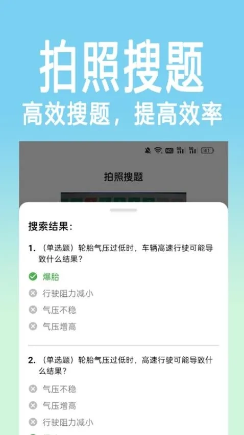 学法减分拍照搜题(学法减分搜题)专为驾驶员设计,实用高效。它有< b>权威题库,实时同步内容;< b>智能识别技术先进,搜题快准;还能< b>规划学习,强化薄弱点,助你顺利通过学法减分考试。