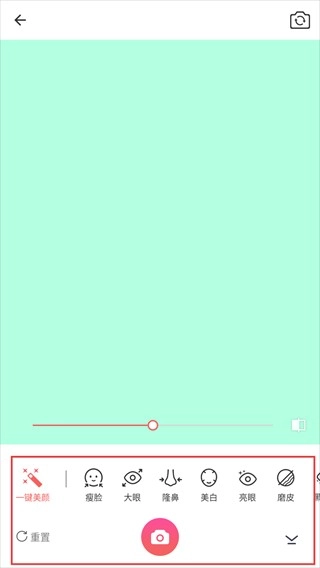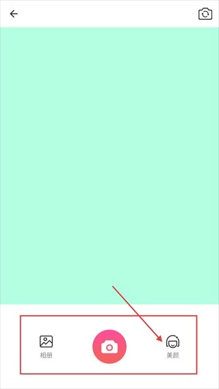 3、进入相机界面后,点击底部右侧的【美颜】按钮,可进入美颜功能设置页面。