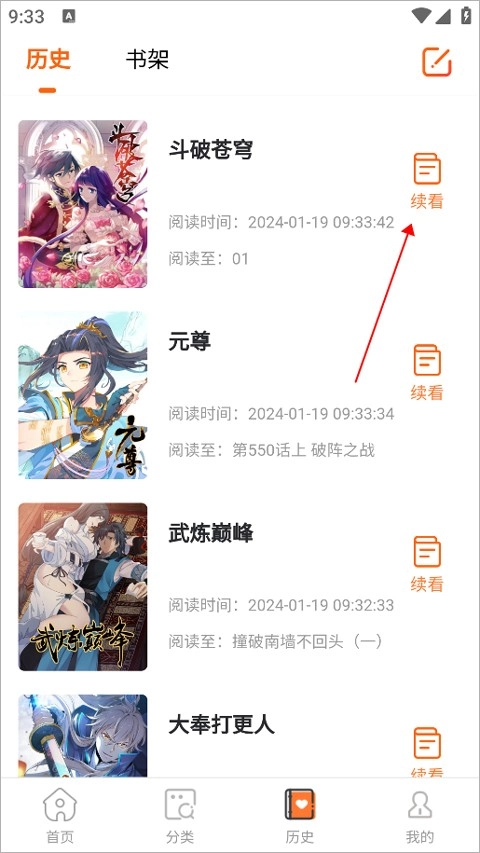 2、然后点击续看