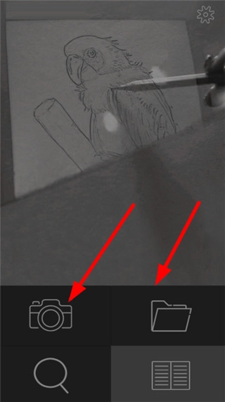 1、现在打开“光学绘画”的主页之后,我们可以直接通过拍照的方式编辑照片,也能够从手机本地导入图片素材进行编辑(如下所示)。