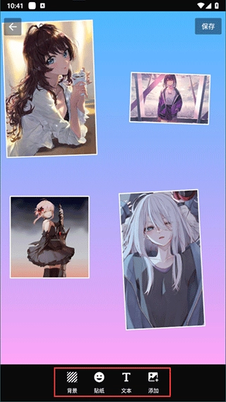 5、拼图背景样式丰富,支持更换颜色、图案或图片背景,并可自定义添加装饰元素,提升整体美感。