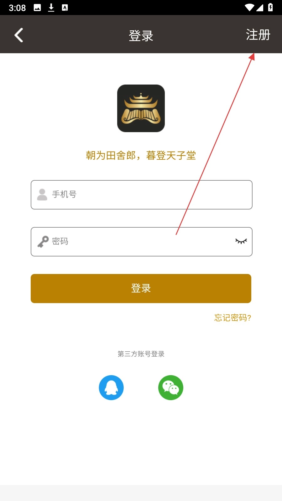 3、在登录页面,点击右上角【注册】,进入注册页面。