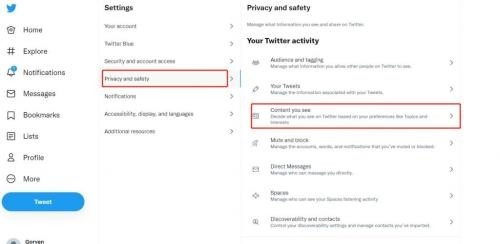 3、在设置界面中,点击隐私安全右侧中的内容(Content you see)选项.