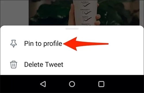 4、从手机屏幕底部弹出的菜单中,选择“Pin to profile”。