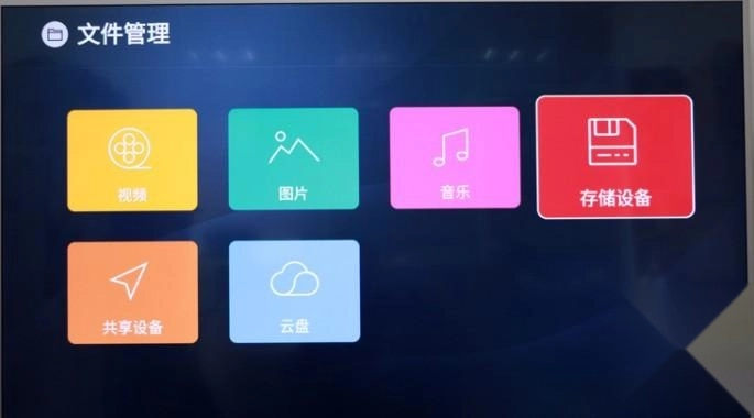 二、打开电视并将U盘连接电视USB接口,然后打开应用里“文件管理”,选择“存储设备”打开USB,找到当贝市场apk,点击并确认安装即可;
