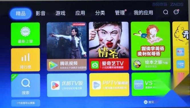 三、当贝市场安装好之后,就可以随意在电视里面安装你需要的第三方直播、点播、游戏等应用,例如:影视快搜、银河·奇异果等!