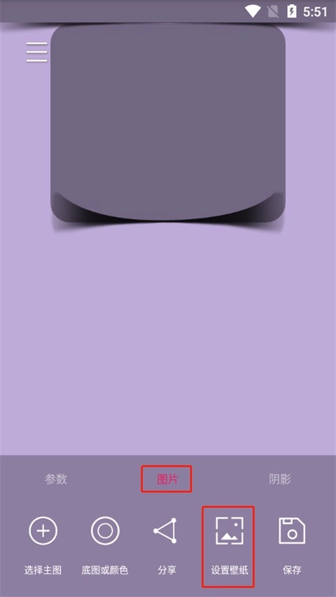 当壁纸图片添加完毕后,大家还可以通过左下角的“参数”或右下角“阴影”功能来设置氢壁纸效果。
